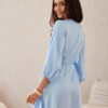 Frederica dress is a satin model that combines elegance, femininity and everyday comfort. Made of gently shimmering fabric, it beautifully reflects the light, adding a subtle glow to every styling. Its light, pleasant to the touch material softly lays on the silhouette, creating an effect of luxurious simplicity that doesn’t need many accessories to make an impression. The wrap neckline visually slims down the upper body, and the bow tie at the waist for a charming bow not only shapes the silhouette, but also adds a romantic touch to the whole look. Puffy 3/4 sleeves with delicate gathering at the shoulders emphasize the vintage style and make the dress look extremely girly. The short, mini cut exposes the legs and adds lightness to the silhouette, making every woman feel comfortable, sensual and exceptional in it. Frederica dress is a perfect choice for many occasions, from evening out, through a date, to a family gathering. Just add classic pumps and jewelry to achieve an elegant effect with a hint of glamour. On the other hand, combined with ballet flats or sandals, it will be perfect for less formal occasions.