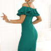 Discover feminine style and elegance with the green dress from the Numoco brand! The fitted cut beautifully emphasizes the silhouette, and the exposed shoulders and delicate ruffles add a romantic, sensual character. Made of high-quality material, it will be perfect for elegant parties, weddings, dates, or special occasions.