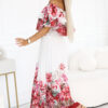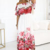 Discover the feminine charm and lightness with this unique Spanish-style maxi dress. The top decorated with a ruffle beautifully exposes the shoulders, and the airy bottom with a floral print creates an ombre effect and attracts attention. A comfortable elastic band is sewn at the waist, which adjusts to the silhouette and ensures comfort throughout the day. Perfect for holidays, garden parties, dates, or summer walks. Fall in love with the romantic style and opt for a dress that will make you feel special! European production.