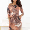 Choose comfort and style! This sporty dress from the latest Numoco collection is a perfect choice for women who value comfort and original design. Made of elastic material, it beautifully fits the silhouette, and the tie at the waist emphasizes the waist. The pattern in shades of copper, beige, and black gives the styling a unique character. The boat neckline can also be sensually dropped on one shoulder. The model has 3/4 sleeves and practical pockets. Perfect for both everyday meetings and evening outings.