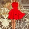 LAURA – dress with heavily flared skirt and lace – red. Fastened at the back with a covered zipper. Numoco brand. Polish product.