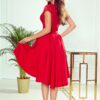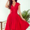 Exclusive asymmetrical dress with longer back, short sleeves, neckline and red lace. Skirt with longer back will be perfect for dancing. Made in Poland. The Numoco brand.