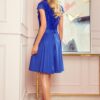 Flared dress with ruffles, neckline and lace. Dress in cornflower blue. Classic and elegant. Made in Poland. The Numoco brand.