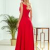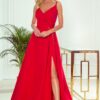 Elegant maxi dress with straps. A beautifully shaped neckline and a slit on the skirt create an unusual composition. Dress in red. Made in Poland. Made by Numoco.