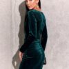 Elegant dress with a layered neckline and dress bottom creating a gently asymmetrical cut. The dress has an envelope neckline that emphasizes the bust. The bottom of the dress is overlapped, so it phenomenally exposes and elongates the legs. Fitted dress with a length before the knee, emphasizing feminine charms. Creases beautifully emphasize the waist and hide any imperfections. Thanks to its versatility, the dress is ideal for both everyday and various occasions. Whatever color you choose, you can style the velour dress elegantly, adding high heels, a clutch bag and your favorite jewelry. On the other hand, for casual styling, you can match suede boots, a bag in muted colors and a hat, the whole thing will create an amazing look with a claw. The cut of the dress will fit the figure very nicely, regardless of size, and will harmonize with our movements. Fastened at the back with a covered zipper. This model is a definite must-have of the autumn-winter season. The product is made and sewn in Poland.