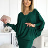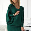 Bat dress with neckline. Made of elastic material with glitter. Dress in the color of bottle green. Brand numoco. Polish production.
