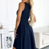 Elegant dress with a longer back. Made of pleasant to the touch material in navy blue color. The skirt with a longer back will prove perfect for dancing. Fastened at the back with a covered zipper. Polish production. Brand Numoco.