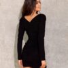 Fitted mini dress perfectly shapes the figure. The mini length exposes the legs, the V neckline subtly reveals and accentuates the bust and back. The cut-off under the bust emphasizes and slims the waist, and the placed draping enhances the shape of the silhouette. The long sleeve perfectly complements the whole and gives the dress a non-obvious form. Fastened with a covered zipper at the back of the dress. Brocade mini dress with a crease is a complete styling for a party or event. The product is made and sewn in Poland.