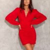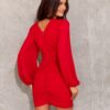 The top of the dress is an overlapping V neckline, which also gently accentuates the back. The long, buffeted sleeves, which give the whole look classy and chic, are finished with an elastic band. The cut-off under the bust emphasizes and slims the waist, and the placed draping enhances the shape of the silhouette. The lower part of the dress is a fitted skirt characterized by a fashionable crease. Its length reaching above the knees and creases add delicacy and subtlety. The entire dress is fastened with a covered zipper at the back of the dress, making it easy to put on. Sarah dress has a lining. This model of dress is an excellent option as a complete styling, which will be perfect for various celebrations. The product is manufactured and sewn in Poland.