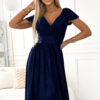 A blushed dress with an envelope neckline and short sleeves. Made of stretchy shiny fabric in navy blue color. Brand numoco. Polish product.