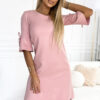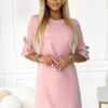 Trapeze comfortable dress with flared sleeves and bows, very feminine. Dress in powder pink color with glitter. Polish product. Brand numoco.