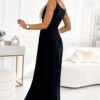 Chiara is an elegant, long strapless maxi dress, made of glittering brocade fabric in a classic black color. The beautifully shaped neckline emphasizes the upper part of the figure, while the slit on the skirt adds sensuality and creates an unusual composition. The elastic material perfectly adapts to the figure. This unique dress is an ideal choice for New Year’s Eve, prom, carnival, St. Andrew’s Day, weddings and other important occasions that require a maxi length creation. Made in Poland by the Numoco brand.