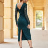 Made of premium lace fabric, this dress combines timeless style with modern sophistication. The elegant lace delights with its subtlety. The dress uses a lining, thanks to which you can be sure that nothing will show through, and guarantees a full sense of comfort. The round neckline emphasizes the bust, while the heart-shaped cutout on the back adds airiness and sensuality. At the back of the dress is an elegant leg slit, which facilitates movement and adds feminine grace. Cushions in the shoulders perfectly emphasize the silhouette and expose the line and shoulders. This dress is a real chameleon in your closet! It will perfectly compose with classic stilettos or elegant heeled boots. To complete the look, just choose delicate jewelry and a clutch bag in a subdued color. For cooler evenings it is worth imposing an elegant long coat or jacket. A lace dress is the perfect choice for special occasions. It is sure to impress at a wedding, an elegant banquet, a romantic dinner or a semi-formal meeting. Whatever the situation, you will gain confidence and a breathtaking look. The product is made and sewn in Poland.