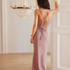 Aria is a special dress that harmoniously combines modern character with classic femininity. Made of high-quality, subtly shimmering material, it delicately envelops the silhouette, emphasizing its natural lines. Thin straps, a plunging neckline, and a fitted cut create a sensual yet elegant form. The back features a deep neckline adorned with a corset lacing, not only a spectacular but also a practical solution, allowing for a perfect fit. Additional gathering at the waist shapes the figure, and the slit on the leg adds lightness and grace to the entire outfit. It is a perfect choice for special occasions, from weddings, through romantic dinners, to elegant evening outings. Aria ensures comfort thanks to careful construction and high-quality finish, while enchanting with every detail. Choose Aria if you are looking for a dress that subtly attracts attention and emphasizes the uniqueness of the moment, with class and sophistication. Designed and made in Poland.
