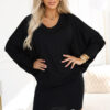 Classic black dress that combines freedom with elegance. The loose batwing top softly drapes the silhouette, while the fitted bottom emphasizes the waist and hip line. This is the model you reach for without hesitation: it works well at work, at a meeting, and during an evening out. Made of pleasant to the touch, elastic fabric, it breathes well and beautifully drapes in movement. The subtle V-neckline slims the neck, while the longer sleeve adds comfort at any time of the year. The quality of workmanship emphasizes the origin: Polish production.