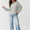 A women’s sweater made of 100% polyamide is a proposal that combines modern design with exceptional comfort. The soft and fluffy material is gentle to the touch, making the sweater wrap around the body like a delicate blanket, providing pleasant warmth on cooler days. The loose fit with slightly dropped shoulder line adds lightness and a casual character, fitting well into both casual and more elegant styles. The classic boat neck emphasizes the feminine shoulder and neck line, while the wide sleeves finished with a subtle ribbing ensure comfort all day long. Perfect for jeans, skirts or leggings, this model will quickly become a staple in your wardrobe. The sweater is available in three fashionable colors: light gray, dusty pink, and light beige, all shades are timeless, feminine, and very versatile.