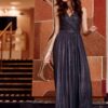 Brocade maxi dress with a tie at the back is an excellent choice among our evening dresses. The dress is stunning because of the small glittering particles in the fabric. It will shimmer beautifully in the sunlight or spotlight with all kinds of colors. The brocade maxi dress with a tie at the back is produced from a beautiful shimmering fabric that will give us a dazzling look. The dress features an envelope neckline and a leg slit, which adds sensuality. The dress features a decorative binding on the back. It fastens with a covered zipper. The evening dress looks especially good on women who like to shine and feel like a real star. The long dress will be ideal for all kinds of celebrations, such as wedding, communion, corporate events. The product is made and sewn in Poland.