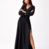 Brocade maxi dress is characterized by decorative binding on the back. The creation sits beautifully on the body regardless of size. The envelope neckline slims the silhouette and elongates the neck. An additional asset is the belt, which effectively marks the waist and slims the silhouette. A sensual cutout reveals and exposes the leg. It is fastened with a zipper located at the back of the dress. The creation sits beautifully on the body regardless of size. The evening dress will work fantastically on the move while dancing, guaranteed WOW effect. Every woman will feel special in it. An excellent choice for special occasions, wedding, parties, banquets, proms, all kinds of celebrations. The product is made and sewn in Poland.