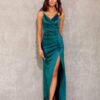 Lamelia maxi dress with open back was produced from fabric that is soft and pleasant to the touch. The model is characterized by a fitted cut. It has an interleaved neckline emphasizing its area, which cleverly combines with the neckline on the back. All thanks to the shoulder straps, which go through the neckline to the back, where they are crossed. Fastened at the back with a covered zipper. The cutout on the side of the leg adds a bit of claw to it, which makes the creation more characterful. The length of the dress reaches to the ankles, which gives it a chic and classy look. The dress has an elastic waist, which beautifully accentuates the silhouette and makes it comfortable to wear. The product is made and sewn in Poland.