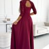 Elegant long maxi dress with a lace neckline. The slit on the skirt together with the lace top create an unusual creation in burgundy color. Polish production. Numoco brand.