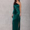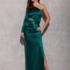 The dress is made of delicate satin fabric, which gracefully wraps the silhouette emphasizing the shapes. An original neckline with one long sleeve and a sexy cutout on the waist add a unique look. Fastening at the back with a covered zipper ensures a perfect fit to the silhouette. The maxi length and leg slit make the Edith dress an exceptional choice for elegant celebrations, which will make you feel extremely feminine and sensual. Edith dress beautifully exposes and emphasizes the qualities of the silhouette making you feel extremely feminine and special at important events such as: prom, wedding, communion, corporate event.