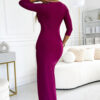 Glitter maxi long dress with envelope neckline and leg slit. Made of stretch fabric with glitter. The dress comes in a fuchsia color. Brand numoco. Polish production.