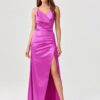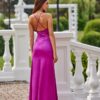 The Lamelia maxi dress with an open back is made of delicate and pleasant-to-touch fabric. The model features a fitted cut. It has a wrap neckline that accentuates the area, cleverly connecting with the back neckline. All thanks to the straps that go through the neckline to the back, where they cross over. It fastens at the back with a concealed zip. The side slit adds a bit of edginess to the dress, giving it character. The dress falls to the ankles, giving it elegance and class. It has an elastic waist that beautifully accentuates the silhouette and provides comfort when wearing. The product is manufactured and sewn in Poland.