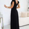 The CRYSTAL dress from the Numoco brand is a long, shiny maxi creation with a wrap neckline and a slit at the leg. Made of black brocade material, it perfectly exposes the neckline, and its cut makes it fit perfectly in dance. The dress is fastened at the back with a hidden zipper, which ensures comfort when dressing and an elegant look. A Polish product, created for special occasions.