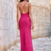 This long strapless dress with an open back is an excellent choice among our collection of evening dresses. Its fitted cut and brocade fabric will make it look stunning. The long dress with open back was made of fabric that impresses with its quality. The long dress features a wonderful fitted cut. It has straps that are crossed at the back on the exposed back. The maxi dress is also characterized by flecks of glitter in the fabric, which will delight everyone. Its layered, envelope neckline will optically lengthen and slim the figure, while the leg slit adds an alluring touch. A dress with an open back will be the perfect choice during a romantic evening for two. Matching it with high-heeled shoes and a small handbag will create a beautiful, elegant styling. The product is made and sewn in Poland.