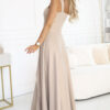 Discover the unique charm of the Aurelia dress, which combines elegance and modern style. It is a long, beige creation with delicate glittering brocade that beautifully shimmers in the light and attracts attention. The dress is designed with a caro neckline, which subtly emphasizes the neck and shoulders, while maintaining class and elegance. The sensual slit on the leg adds lightness and feminine character, and the perfect cut perfectly emphasizes the silhouette. This dress will be perfect for a wedding, ball, prom, New Year’s Eve or special family celebrations. If you are looking for a creation that combines comfort with luxury, Aurelia will be the perfect choice. Numoco brand, made in Poland.