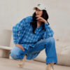 Oversized shirt with long sleeves finished with decorative cuffs fastened with buttons. It has an asymmetrical cut, fastened with buttons.