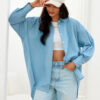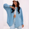 Oversized shirt with long sleeves finished with decorative cuffs buttoned up. It has an asymmetrical cut, buttoned up.