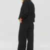A tracksuit is a perfect proposition for people who value comfort and style in their everyday, casual outfits. The tracksuit consists of a loose-fitting sweatshirt and wide trousers, which provide maximum comfort when wearing. The whole outfit is made of soft, pleasant-to-the-touch material, which is perfect for cooler days. The sweatshirt has a classic, simple cut with long sleeves and a slightly dropping shoulder. It is finished with a round neckline. The trousers have wide legs, which give the outfit a trendy, oversized character, and the stitching along the legs visually elongates the legs. An elastic waistband ensures a comfortable fit. This set is perfect for everyday outings, shopping or meetings with friends. This combination of functionality and style is ideal for people who want to feel comfortable without sacrificing a fashionable look.