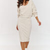 This tracksuit is a proposal for women who appreciate style with a hint of comfort. The simple cut and versatile form of the dress perfectly accentuate the silhouette. Thanks to the ribbed structure of the material, it is both elastic and compact, providing full freedom of movement. The midi length is a classic in fashion, which additionally emphasizes elegance and never goes out of style. The loose cut of the sweatshirt and the V-neckline give it a casual yet stylish character. Sleeves finished with ribbing allow for adjusting their length, and the short waistband fits perfectly with the dress, adding lightness to it. The loose sweatshirt and fitted dress create a fashionable yet practical look that is suitable for both everyday meetings and more relaxing days at home.