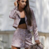 Discover style and comfort with the brand new BLISS Panterka beige set. This unique set consisting of a fashionable jacket and skirt-pants is a perfect choice for women who want to combine elegance with comfort in their everyday styling. Thanks to the unique panther pattern, this set catches the eye and will certainly become one of your favorite wardrobe items. The jacket in the set stands out with the right length and optimal fit. The set is made of high-quality materials, consisting of 95% viscose and 5% elastane. This composition makes the product not only aesthetic, but also pleasant to wear. Viscose is characterized by excellent air permeability, making it ideal for different seasons. Elastane, on the other hand, adds elasticity, ensuring a perfect fit to the silhouette. Ideal for both everyday wear and special occasions, the BLISS Panterka beige set is not only a fashionable choice, but also a versatile element that goes well with many styles. You can pair it with bracelets and high-heeled open-toe shoes, creating a stylish outfit for evening outings, or combine it with sneakers for a casual look. Choose luxurious comfort and trendy appearance with a set that will surely become a must-have for every fashionable woman.