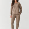 Comfortable and stylish women’s tracksuit set is the perfect choice for women who value comfort without sacrificing a fashionable look. Made of high-quality material, a combination of cotton and elastane provides softness, flexibility, and durability, making it perfect for both at home and on the go, shopping, or work. The sweatshirt has a classic, loose fit with long sleeves finished with ribbing, adding a sporty character. Meanwhile, the round neckline emphasizes its versatility. The classic trousers are comfortable, thanks to their loose fit and equipped with practical large pockets, which not only look great but are also incredibly functional. Additionally, there are seams at the bottom of the legs, giving a slight narrowing effect towards the bottom. The tracksuit does not pill, withstands washing well, and retains its shape, so it will serve you for many seasons.