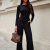 Introducing the SHIRA set, which combines elegance and comfort. This stylish black long-sleeved set is the perfect choice for those who appreciate both a fashionable look and comfort. Made from high-quality materials, it provides a perfect fit and freedom of movement, making it an excellent choice for various occasions. The pants included in the set are also a perfect example of attention to detail, providing comfort and style. The material from which the set is made is 95% viscose and 5% elastane, ensuring its elasticity and softness. The SHIRA set is a perfect choice for women who want to look stylish and feel comfortable all day long. Don’t wait, enhance your wardrobe with this unique set!