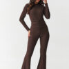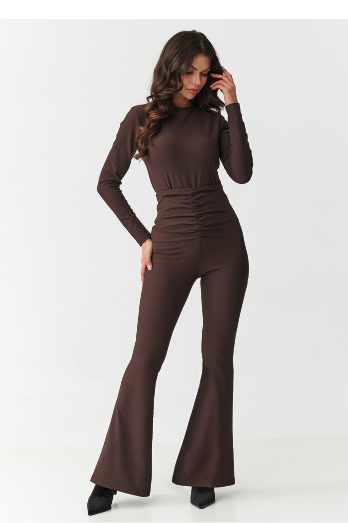 Bet on a look that combines elegance and comfort! This unique women’s set consists of a fitted blouse with long sleeves and high-waisted pants with flared legs. Made of high-quality ribbed material, it beautifully accentuates the silhouette and provides comfort throughout the day. The blouse has a classic cut with a high neckline and is fastened at the back with a zipper, making it comfortable and very chic at the same time. High-waisted pants emphasize the waist and shape the figure, and thanks to the gathering at the waist, they give the silhouette proportions, while the flared flare legs visually lengthen the legs. Available in four timeless colors: burgundy feminine and sensual, black classic that goes with everything, chocolate modern and striking, beige elegant and subtle. This set will work for many occasions from evening meetings, through formal outings, to business stylizations. Just add your favorite high-heeled shoes and jewelry to create a stylish and modern look.