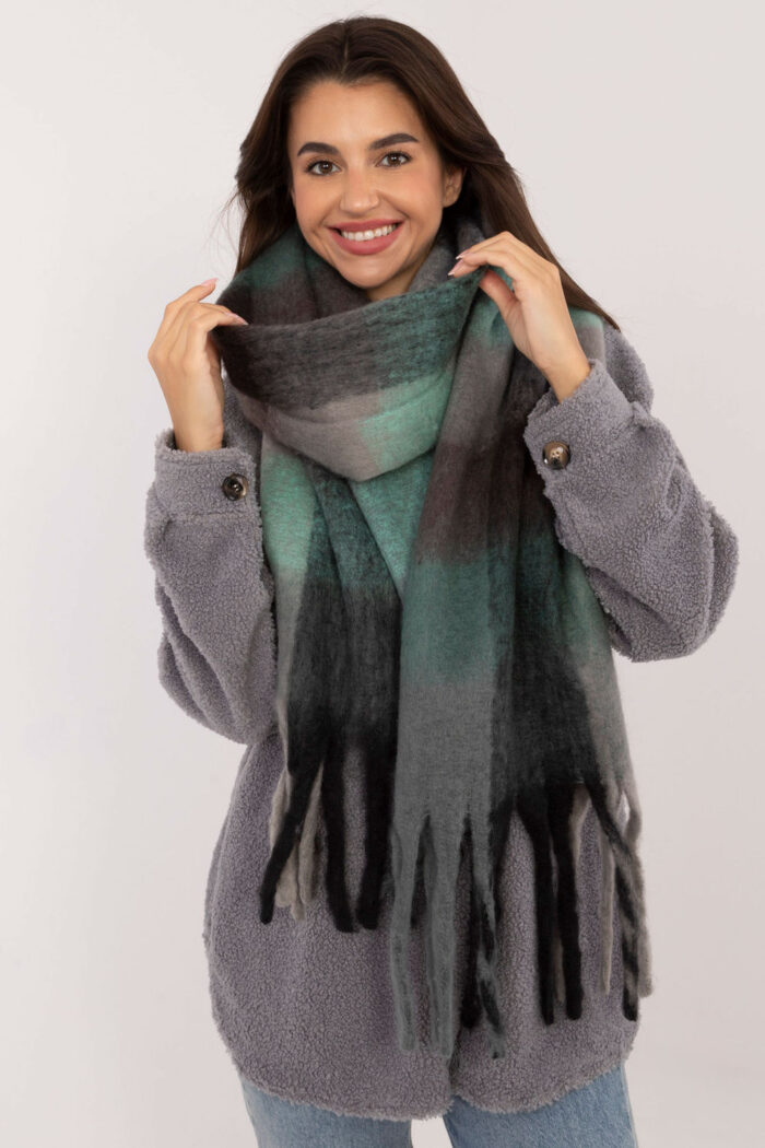 Elegant scarf measuring 220 cm made of polyester in a classic grid pattern, perfect for cooler days. Made of high quality material, it provides warmth and comfort. Decorative fringes add a fashionable, stylish accent that enriches every winter outfit. This versatile scarf combines functionality with elegance, making it a perfect addition to many different outfits.