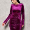 Mini dress in a timeless classic cut. Decorative creasing, as well as a cut built in at the neckline with long extended sleeves ending in an expansion with a cutout. Dress decorated at the bottom with a striking crease, which will subtly emphasize the assets of the silhouette. Fitted cut. Shallow, rounded neckline. Cushions built on the shoulders create a statuesque form, thanks to them the dress acquires unusual elegance. Made of elastic, brocade material, comfortable to wear. Phenomenal cut beautifully emphasizes the silhouette, giving it a feminine shape. The mini length perfectly exposes the legs. Straight hem, chicly exposed back and extended sleeves. Fastened at the back with a covered zipper. Comfortable to wear and elegant in color. Go wild and opt for this modern cut by matching your favorite accessories for a luxurious touch. A perfect choice for a romantic date, dinner, upcoming event. The product is made and sewn in Poland.
