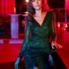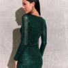The sequin envelope cut dress is absolutely captivating and chic. It has a sewn-in waist belt, thanks to which it emphasizes the silhouette nicely and easily adapts to the figure regardless of size. Fastened at the back with a covered zipper. A stunningly charming mini dress with sequins and an overlap neckline that beautifully emphasizes the bust. The bottom of the dress is overlapped, thanks to which it phenomenally exposes and elongates the legs. The length is before the knee. Thanks to the careful finishing, elastic lining and hemmed edges, you can be sure that sequins will not scratch the skin and pull the tights. You can party all night long in such a creation. A sequin dress is perfect for many occasions. Sequins shimmer beautifully when exposed to light, so you can easily stand out from the crowd. The product is made and sewn in Poland.