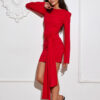 A short dress with long sleeves combines modern style with feminine elegance. Extended cuffs and shoulder pads give the creation a distinctive, fashionable character, while a decorative sash at the waist subtly accentuates the silhouette. Made of elastic material, it provides comfort and perfect fit. Ideal for evening outings, parties, and special occasions. The dress is designed and made in Poland.