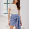 The mini skirt with decorative binding is ideal for women who love distinctive and fashionable accents. Its short, fitted cut will make you feel feminine and trendy. Fastened at the back with a convenient zipper, it guarantees easy on and off. The Abby skirt features a decorative knot binding on the front, which adds a unique touch and makes the skirt even more special. Made of high-quality, airy fabric that imitates denim, it will keep you comfortable all day long. If you want to create a complete and unique total look, pair the Abby skirt with the Leyla shirt. Add some colorful accessories, a small handbag and post sandals and create a fashionable and phenomenal styling. Abby miniskirt is perfect for many occasions. You can wear it on a date, a party with friends or an evening walk around town. It is a unique piece of clothing that will allow you to stand out and express your unique style.