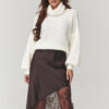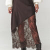 Focus on a style that combines femininity with a modern character. An asymmetrical skirt with a delicate, lace insert is a model that attracts attention and adds confidence. Smooth fabric in the upper part beautifully contrasts with the subtle lace at the bottom, creating a lightness effect and exceptional elegance. Perfect for both heavy boots and feminine heels, it will work in many stylizations, from casual to evening. Available in two colors: classic black and deep chocolate shade. Thanks to the elastic waist, it perfectly fits the silhouette. Made in Italy.