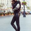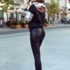 A comfortable hooded kangaroo sweatshirt in black with colourful inserts. Made of warm and slightly elastic material. Polish product. Brand numoco.