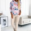 Comfortable kangaroo sweatshirt with hood. Pattern: gold hexagons with pink and blue marbling. Made of warm and slightly stretchy material. Polish product. Brand numoco.