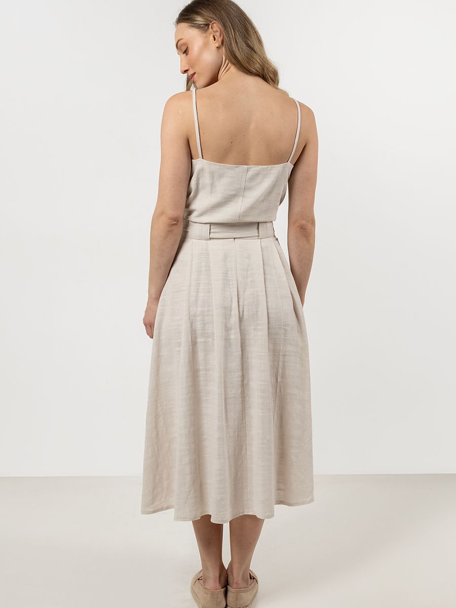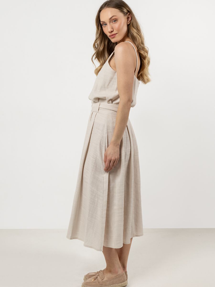 Minimalistic and universal, this top is a must-have for warm days. Made from natural, soft cotton, it ensures breathability and comfort. The thin straps subtly highlight the shoulders, and the hip-length design makes it perfect for pairing with both skirts and trousers. It works great for both casual and elegant outfits. Pair the top with a skirt made from the same fabric or with bermuda shorts. You will create a comfortable summer set.