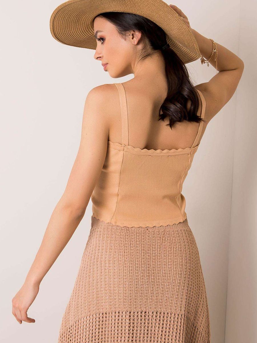 A minimalist camisole top made of ribbed material is a must-have in a casual wardrobe. Its smooth texture and rectangular neckline give it a modern, versatile character that works great in everyday styling. The shorter length pairs perfectly with high-waisted jeans, shorts, or skirts, accentuating the silhouette. Thanks to the elastic combination of polyamide and elastane, the top fits perfectly to the body, providing comfort and freedom of movement. It is a simple yet stylish model that works great both on its own on warmer days and as a base for blazers or shirts.
