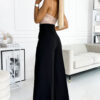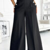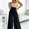 Elegant wide pants with a high waist and gold buttons. Made of smooth matte fabric in black. Numoco brand. Polish product.