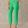 The elegant pants have straight legs finished with a delicate turn-up. This makes them look extremely elegant, even when accompanied by sneakers. There are slanted, slip pockets on the sides and a zipper closure on the side. They come in a solid color scheme, which adds to their timeless style. Made of smooth fabric with a classic cut. The product is manufactured and sewn in Poland.
